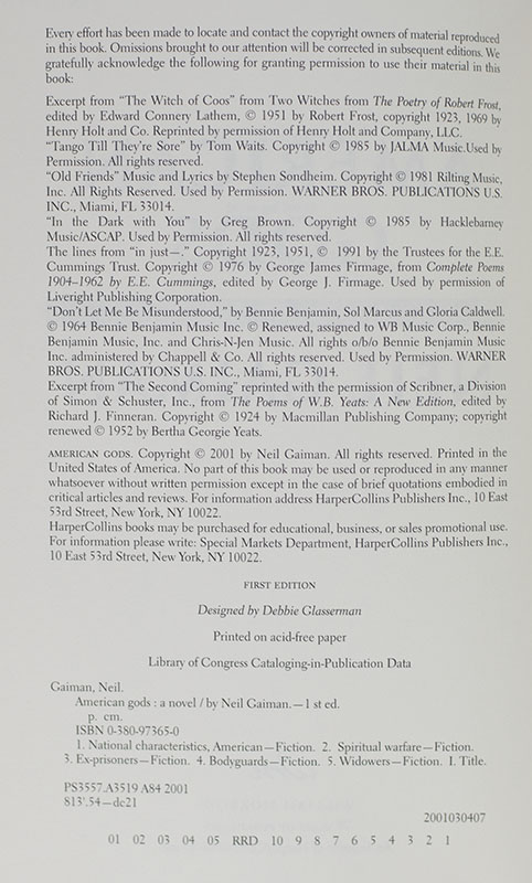First Edition of Neil Gaiman's American Gods; Signed by Him