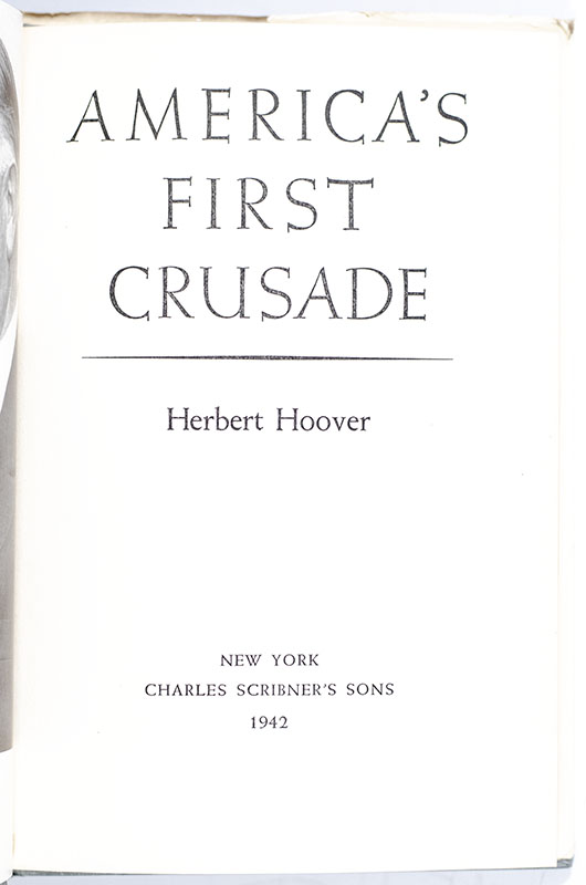First Edition of Herbert Hoover's America's First Crusade; Inscribed by Him