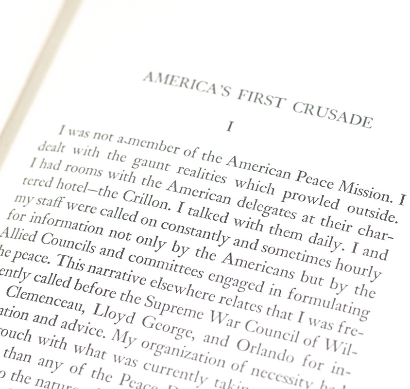 In Hoover's foreword he writes of the book, ''...The particular importance of this material is as a reminder of the gigantic lessons of 1919...We need preparedness for the peace table even as we need it for defense.''