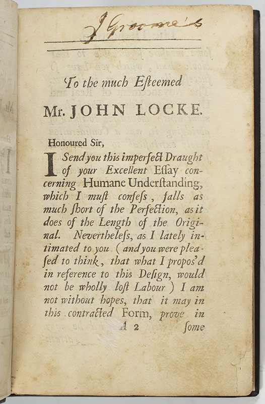 First Edition of An Abridgement of Mr. Locke's Essay concerning Humane Understanding