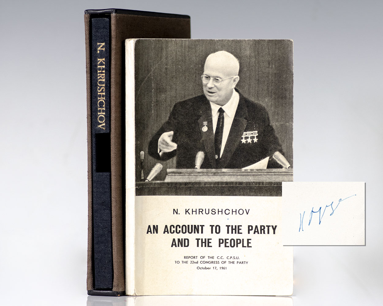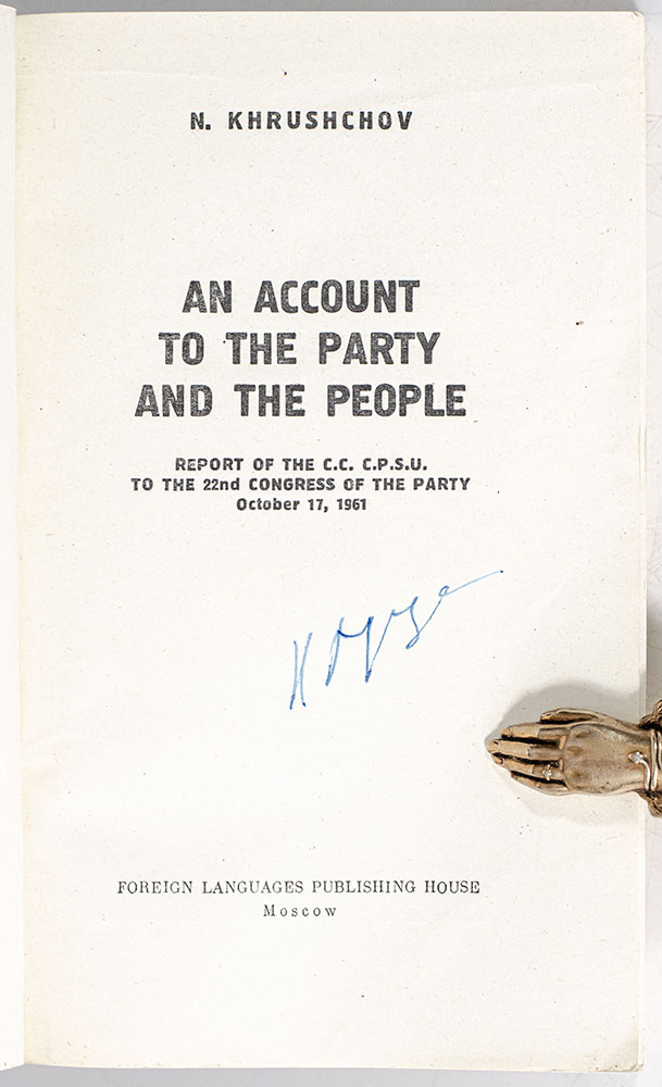 First edition of Nikita Khrushchev's An Account of the Party and the People; signed by him