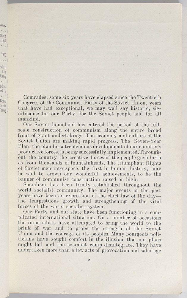 First edition of the First Secretary of the Communist Party of the Soviet Union's official report on the 22nd Congress of the Communist Party of the Soviet Union. Octavo, original illustrated wrappers. Signed by Nikita Khrushchev on the title page. In near fine condition. Housed in a custom slipcase.