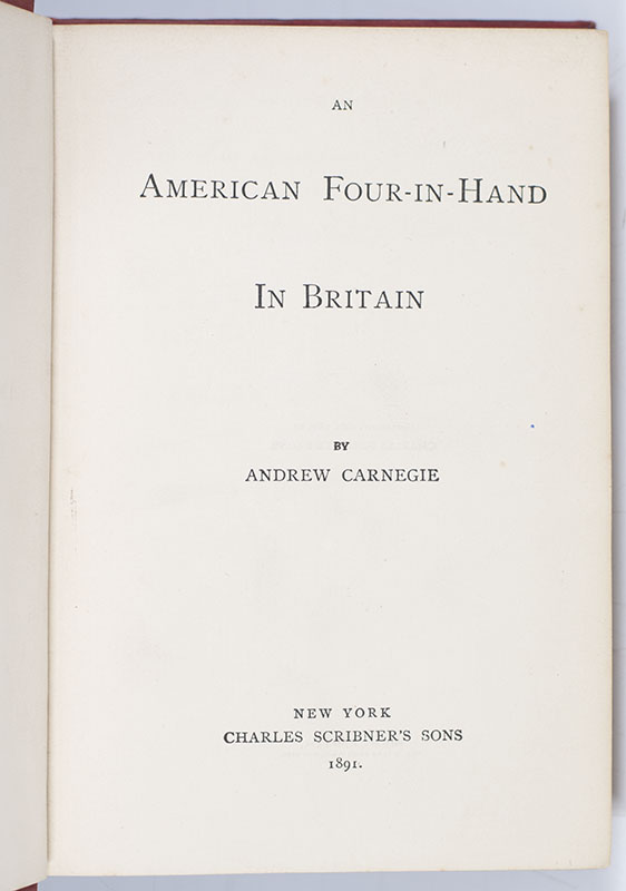 Andrew Carnegie's An American Four-in-Hand in Britain; Inscribed by Him