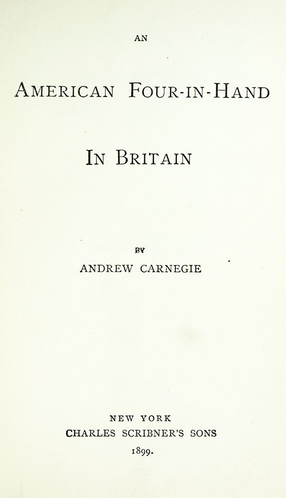 Andrew Carnegie's An American Four-in-Hand in Britain; Inscribed by Him to His Attorney