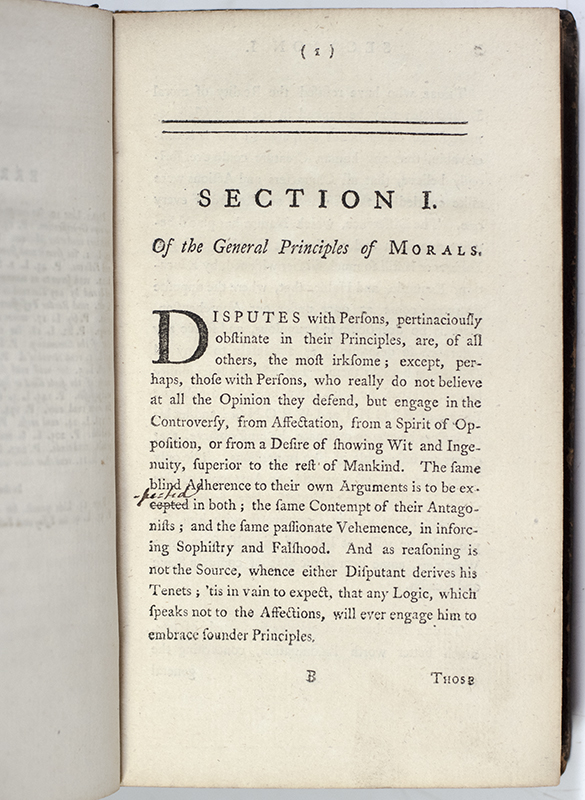 First edition, first state of David Hume's An Enquiry Concerning the Principles of Morals