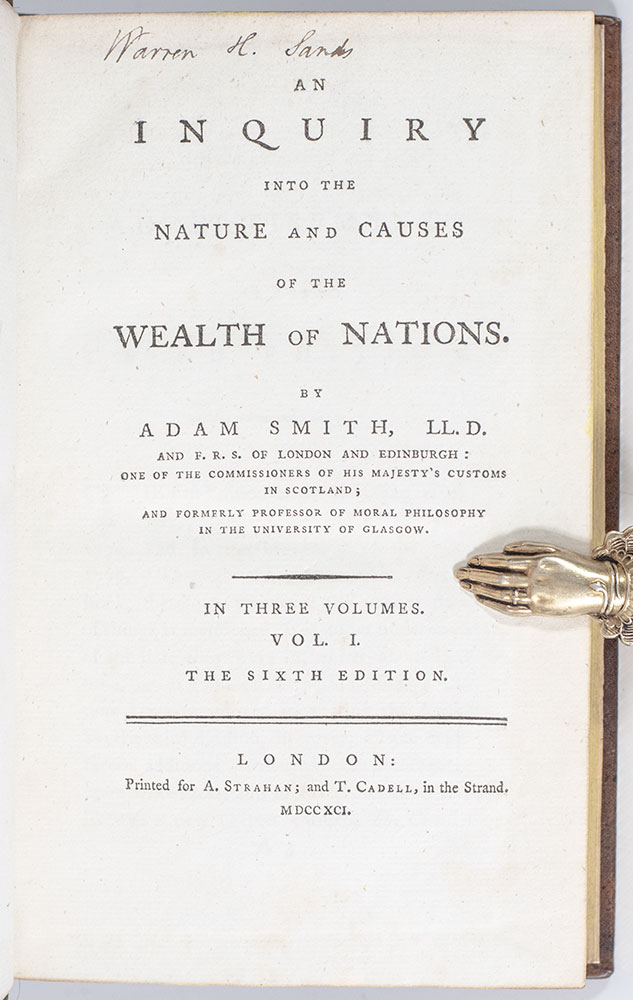 "The first and greatest classic of modern economic thought": Adam Smith's Magnum Opus An Inquiry into the Nature and Causes of the Wealth of Nations; Finely Bound