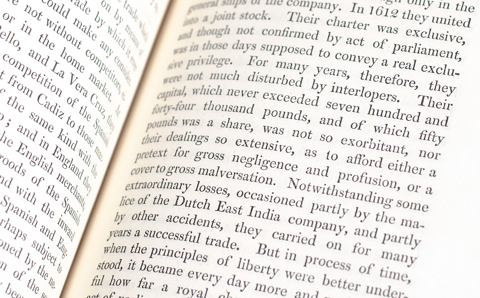 Adam Smith's masterpiece, first published in 1776, is the foundation of modern economic thought and remains the single most important account of the rise of, and the principles behind, modern capitalism. "The history of economic theory up to the end of the nineteenth century consists of two parts: the mercantilist phase which was based not so much on a doctrine as on a system of practice which grew out of social conditions; and the second phase which saw the development of the theory that the individual had the right to be unimpeded in the exercise of economic activity. While it cannot be said that Smith invented the latter theory...his work is the first major expression of it. He begins with the thought that labour is the source from which a nation derives what is necessary to it. The improvement of the division of labour is the measure of productivity and in it lies the human propensity to barter and exchange...Labour represents the three essential elements-wages, profit and rent-and these three also constitute income. From the working of the economy, Smith passes to its matter -'stock'- which encompasses all that man owns either for his own consumption or for the return which it brings him. The Wealth of Nations ends with a history of economic development, a definitive onslaught on the mercantile system, and some prophetic speculations on the limits of economic control...The Wealth of Nations is not a system, but as a provisional analysis it is complete convincing. The certainty of its criticism and its grasp of human nature have made it the first and greatest classic of modern economic thought" (PMM).