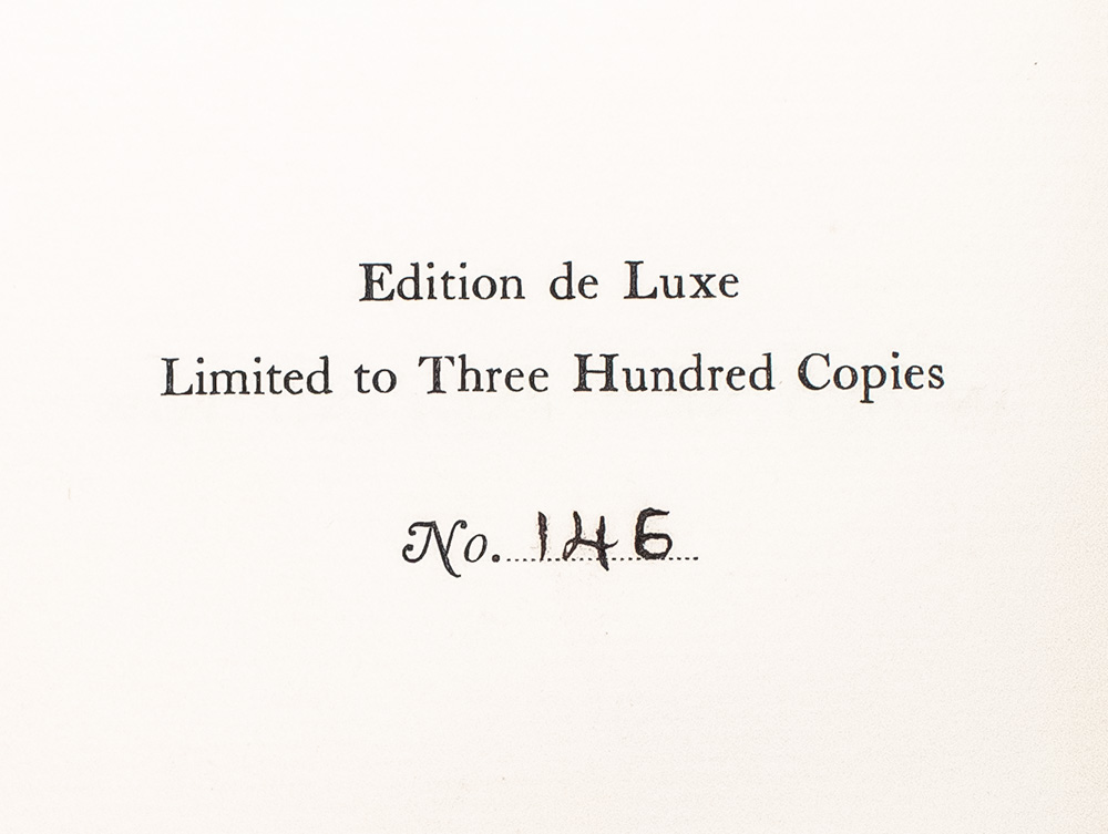 Limited edition de Luxe of this sketch of Old New England towns; from the library of Philemon Tecumseh Sherman. Octavo, bound in three-quarter morocco over marbled boards with gilt titles and tooling in six compartments within gilt raised bands, top edge gilt, marbled endpapers, tissue-guarded frontispiece portrait of Judge Roger M. Sherman, illustrated with tissue-guarded black and white photographs. P. T. Sherman's bookplate to the front free endpaper. One of  three hundred copies, this is number 146. In very good condition with some rubbing to the extremities.