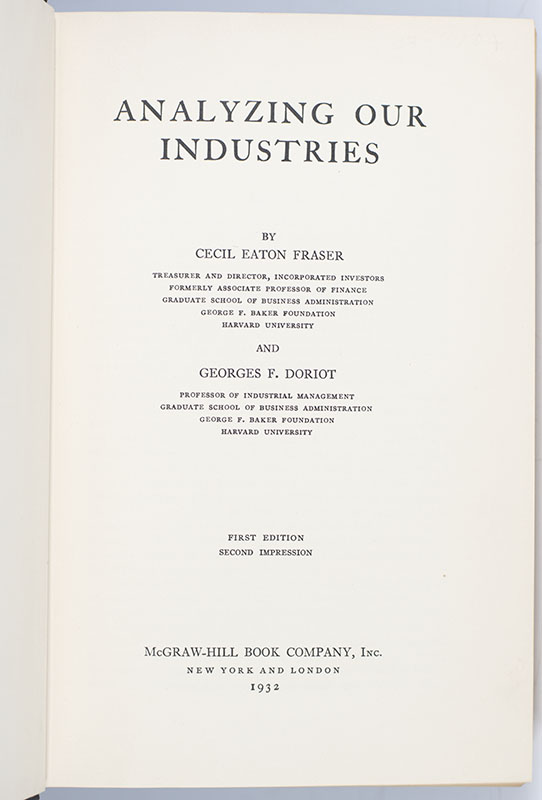 Rare First edition of Doriot and Eaton's Analyzing Our Industries