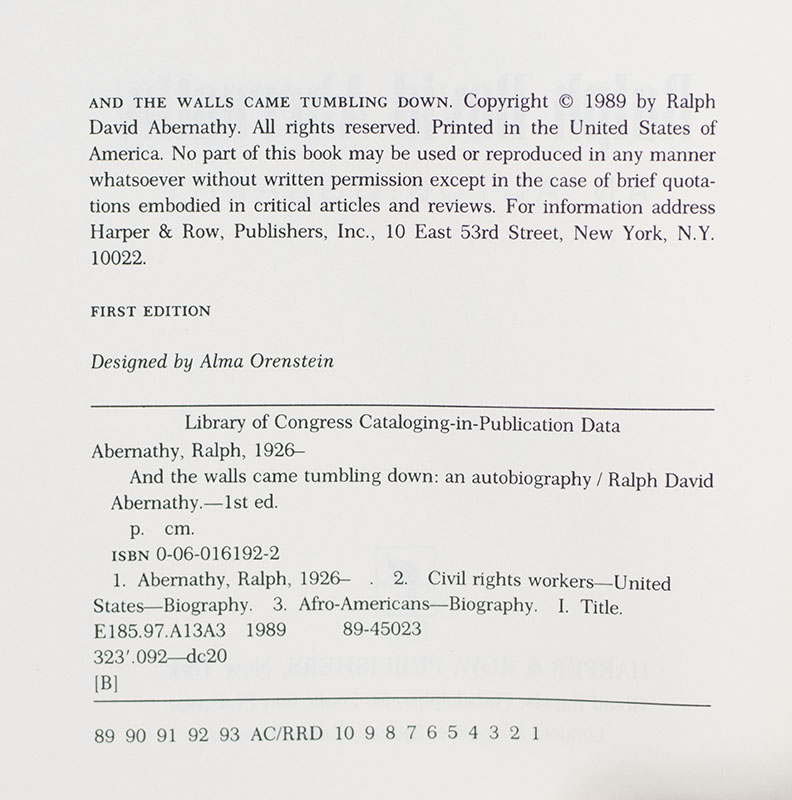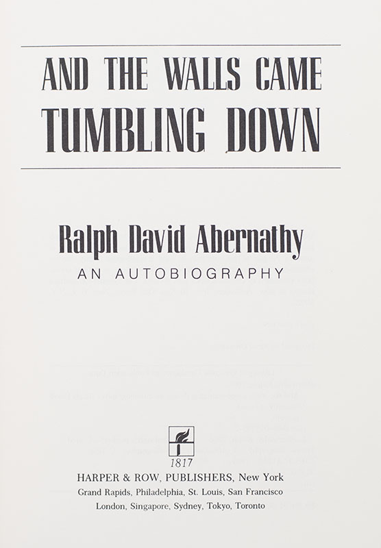 "History will treat me right": First Edition of Ralph David Abernathy's And the Walls Came Tumbling Down; Signed by Him