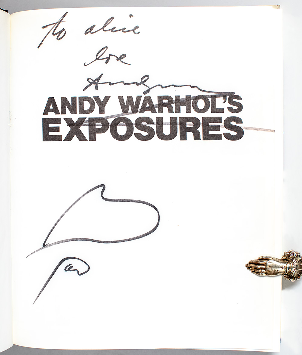 “A picture means I know where I was every minute. That’s why I take pictures. It’s a visual diary": First Edition of Andy Warhol's Exposures; Signed Twice by Andy Warhol with a large Drawing