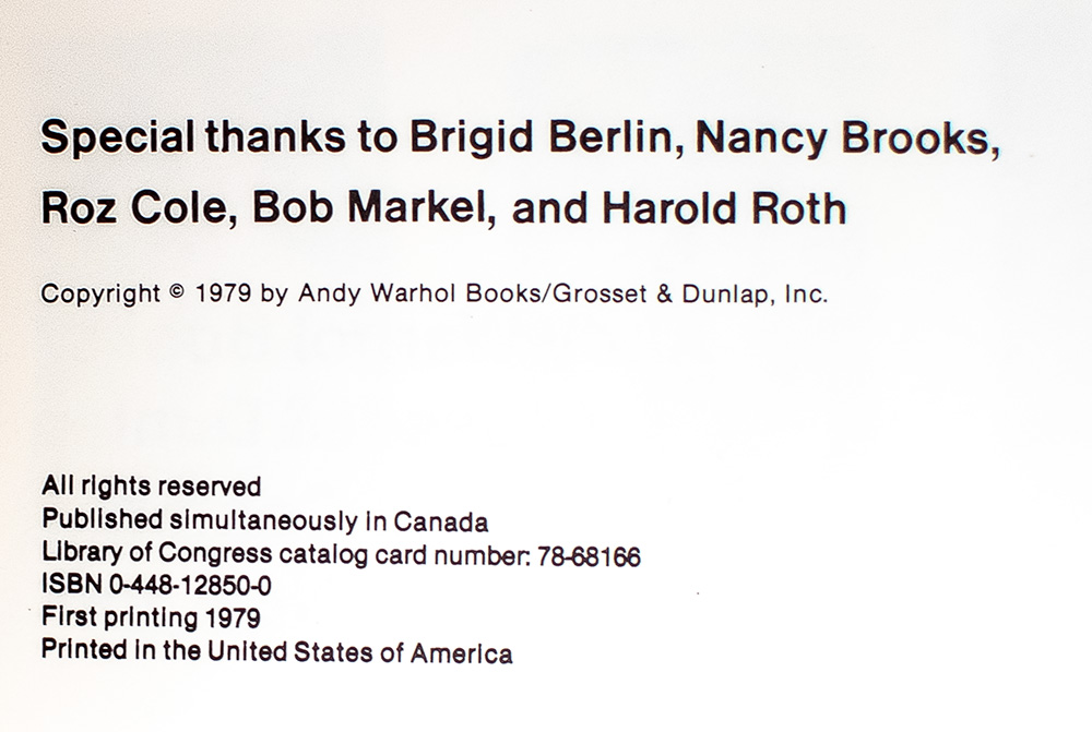 New York: Andy Warhol Books/ Grosset & Dunlap, 1979.
