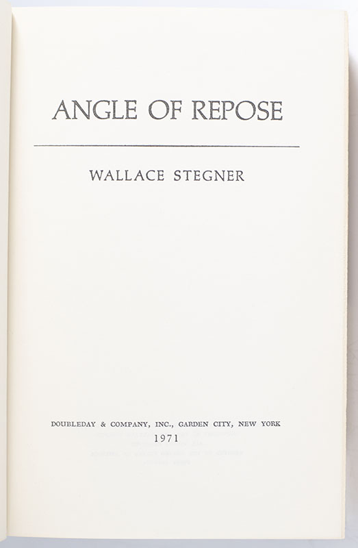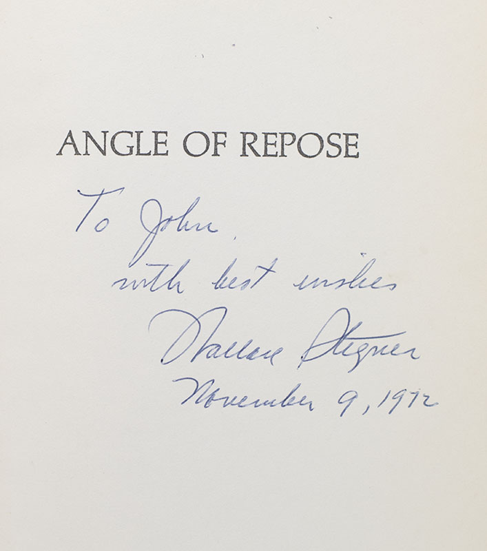“Wisdom. . .is knowing what you have to accept": First Edition of Wallace Stegner's Pulitzer Prize-Winning Novel Angle of Repose; Inscribed by Him