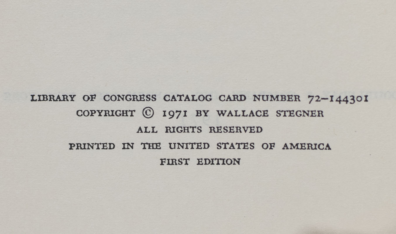 First edition of the author's Pulitzer Prize-winning work. Octavo, original cloth. Presentation copy, inscribed by the author on the half-title page, "To John with best wishes Wallace Stegner November 9, 1972." Fine in a near fine dust jacket with a touch of shelfwear. Jacket design by E.D.N. Designs. Photograph of the author by Alex Gotfryd. An exceptional example, uncommon signed and inscribed.