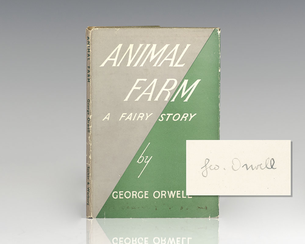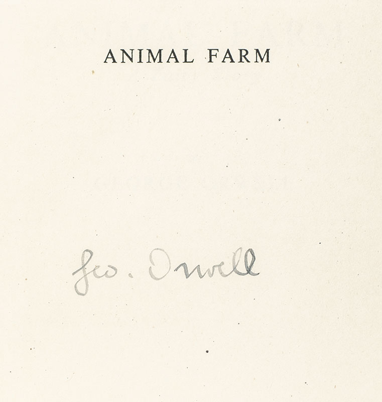 "ALL ANIMALS ARE EQUAL, BUT SOME ANIMALS ARE MORE EQUAL THAN OTHERS": FIRST EDITION OF GEORGE ORWELLS MASTERPIECE ANIMAL FARM; SIGNED BY HIM