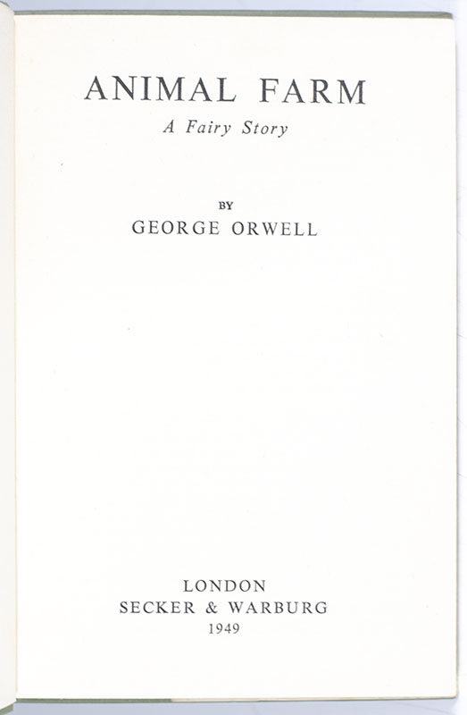 First 'Cheap Edition' of Orwell’s timeless allegorical novel—a scathing satire on a downtrodden society’s blind march towards totalitarianism. Octavo, original green cloth. Near fine a very good dust jacket with a closed tear to the crown of the spine. Name to the front free endpaper.