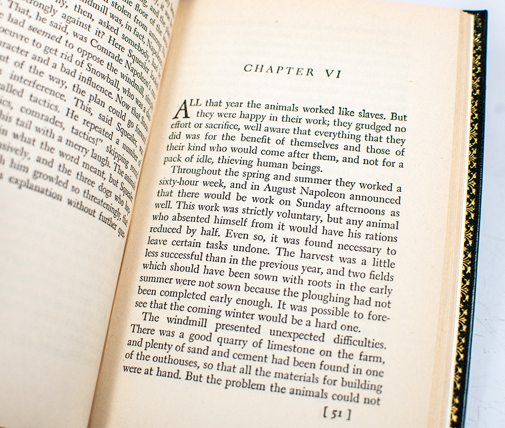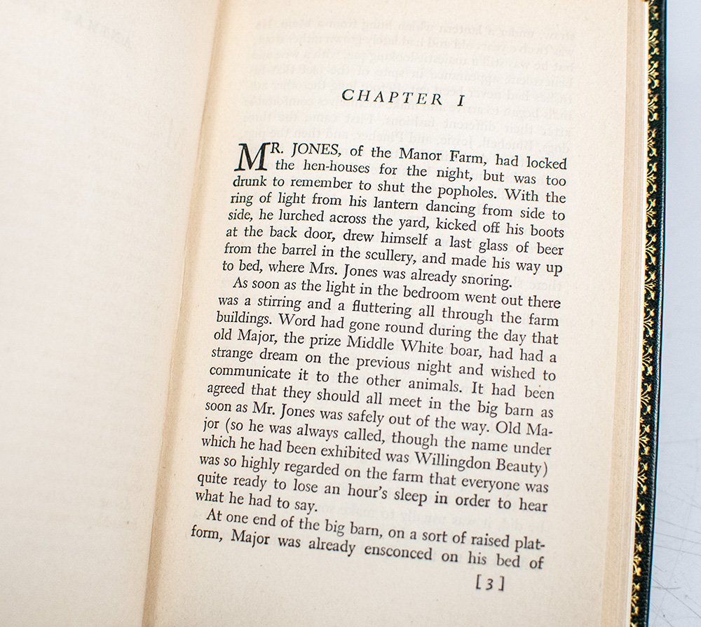 FIRST EDITION OF GEORGE ORWELL’S MASTERPIECE ANIMAL FARM; FINELY BOUND BY THE HARCOURT BINDERY