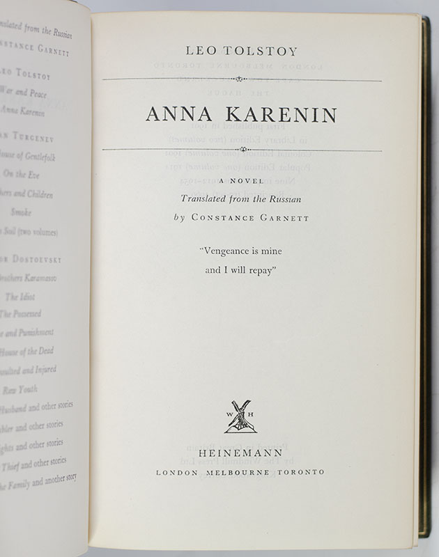 Vladimir Nabokov proclaimed that Leo Tolstoy’s Anna Karenina was "one of the greatest love stories in world literature." Matthew Arnold stated it was not so much a work of art as "a piece of life." Set in imperial Russia, Anna Karenina is a rich and complex meditation on passionate love and disastrous infidelity. First issued serially in 1873; first published in book form in Moscow in 1878. Upon first reading it, Dostoyevsky wrote: “Anna Karenina is sheer perfection as a work of art. No European work of fiction of our present day comes anywhere near it.”