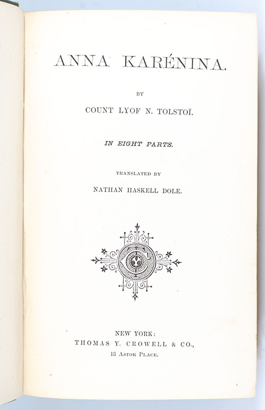 "Not one word, not one gesture of yours shall I, could I, ever forget": First Edition In English Of Tolstoys Masterpiece Anna Karenina