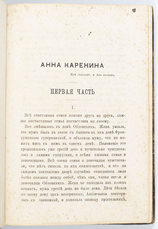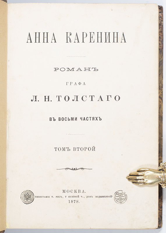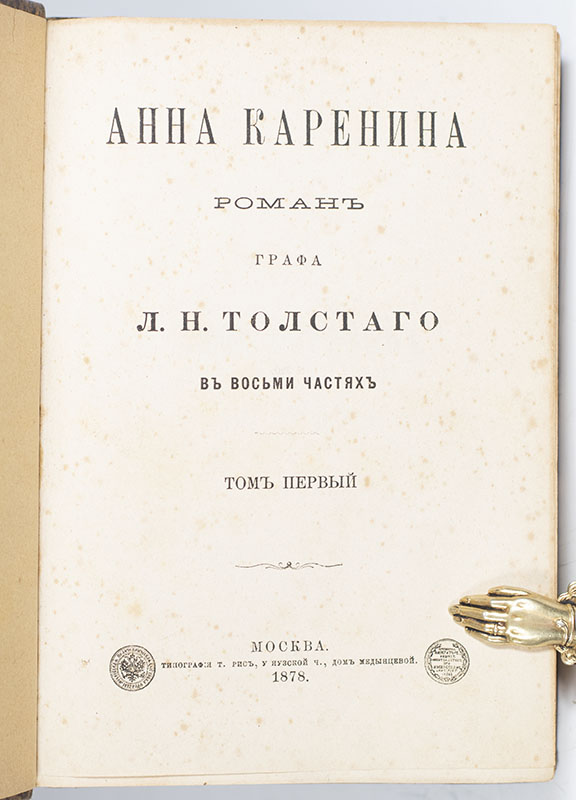"As art it is perfection" (Dostoevsky); Rare First Russian Edition Of Tolstoy’s Masterpiece Anna Karenina