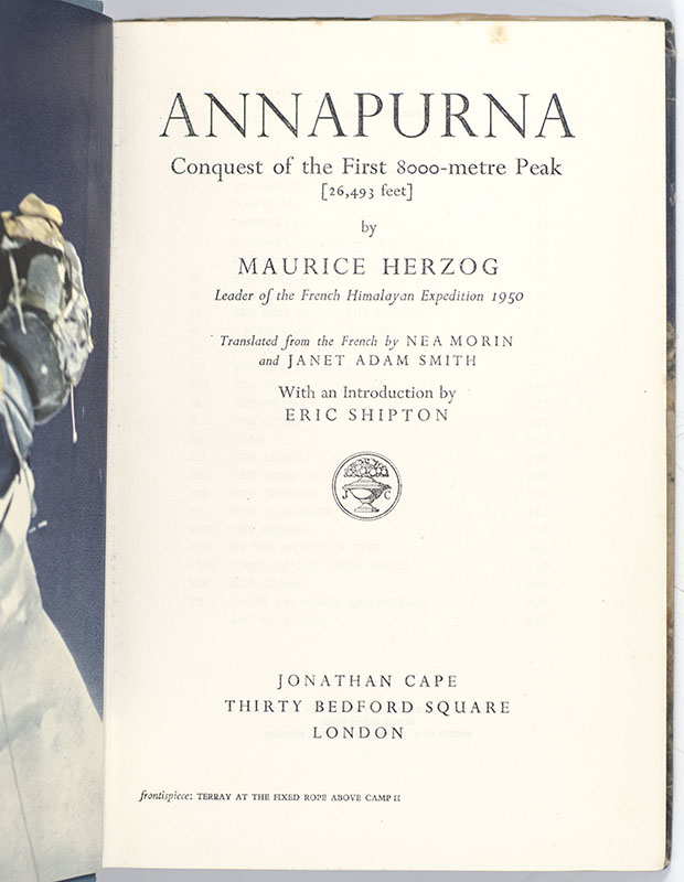 "There are other Annapurnas in the lives of men": First Edition of Maurice Herzog's Annapurna; Inscribed by Him