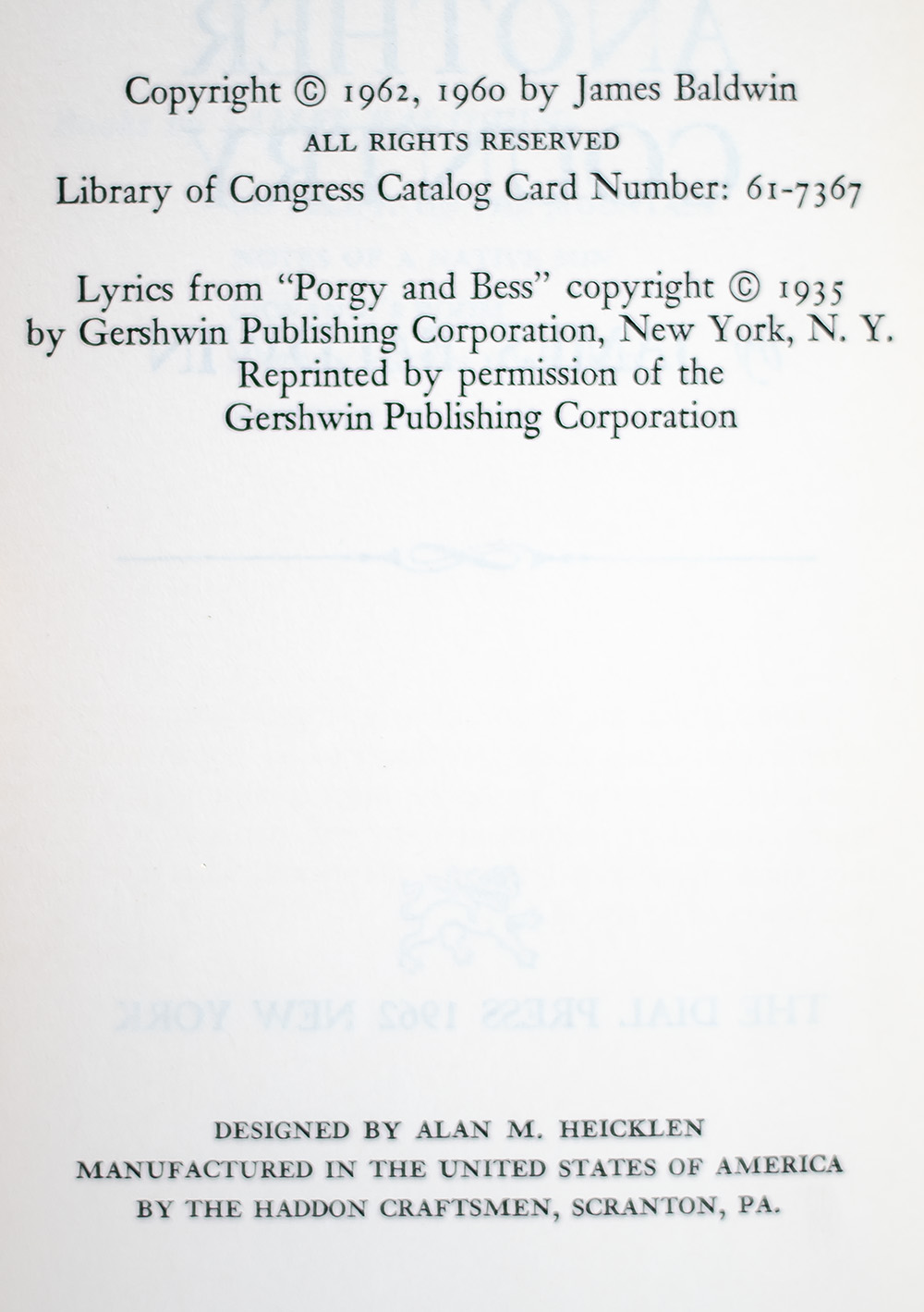 “YOU TOOK THE BEST, SO WHY NOT TAKE THE REST?”: FIRST EDITION OF ANOTHER COUNTRY; inscribed by James Baldwin