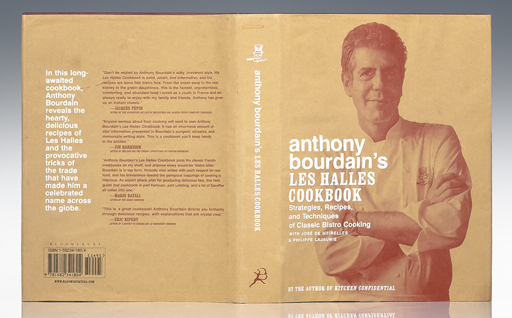 "The absolute foundation of professional cooking, and the most useful thing I can teach you, is the concept of mise en place. As a cook, youR "meez" is your first principle, your belief system, your religion, your Tao": First Edition of Anthony Bourdain's Les Halles Cookbook; Inscribed by him