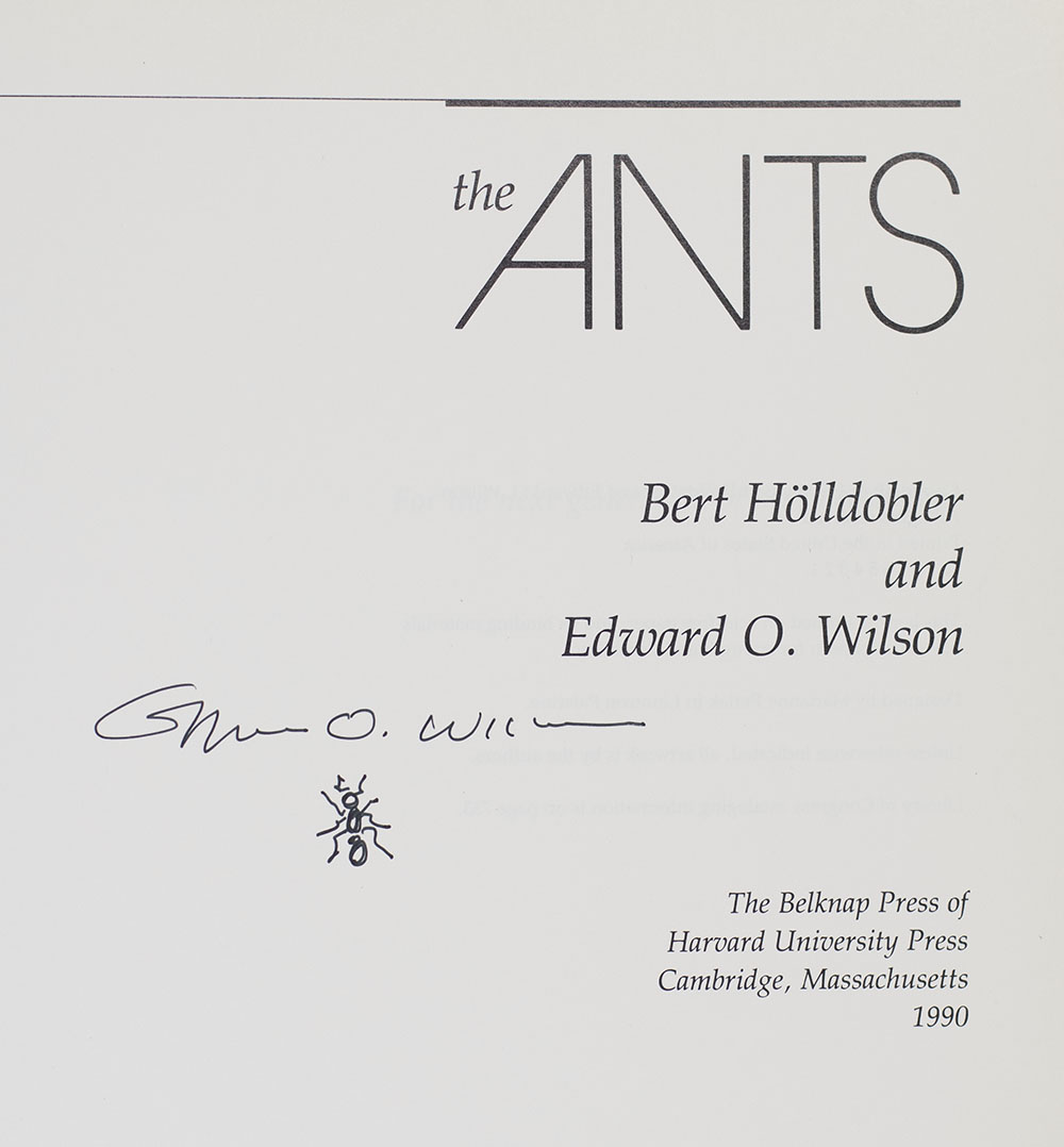 “Ants are everywhere and deserve our attention": FIRST EDITION OF THE ANTS; SIGNED BY EDWARD O. WILSON WITH A DRAWING OF AN ANT