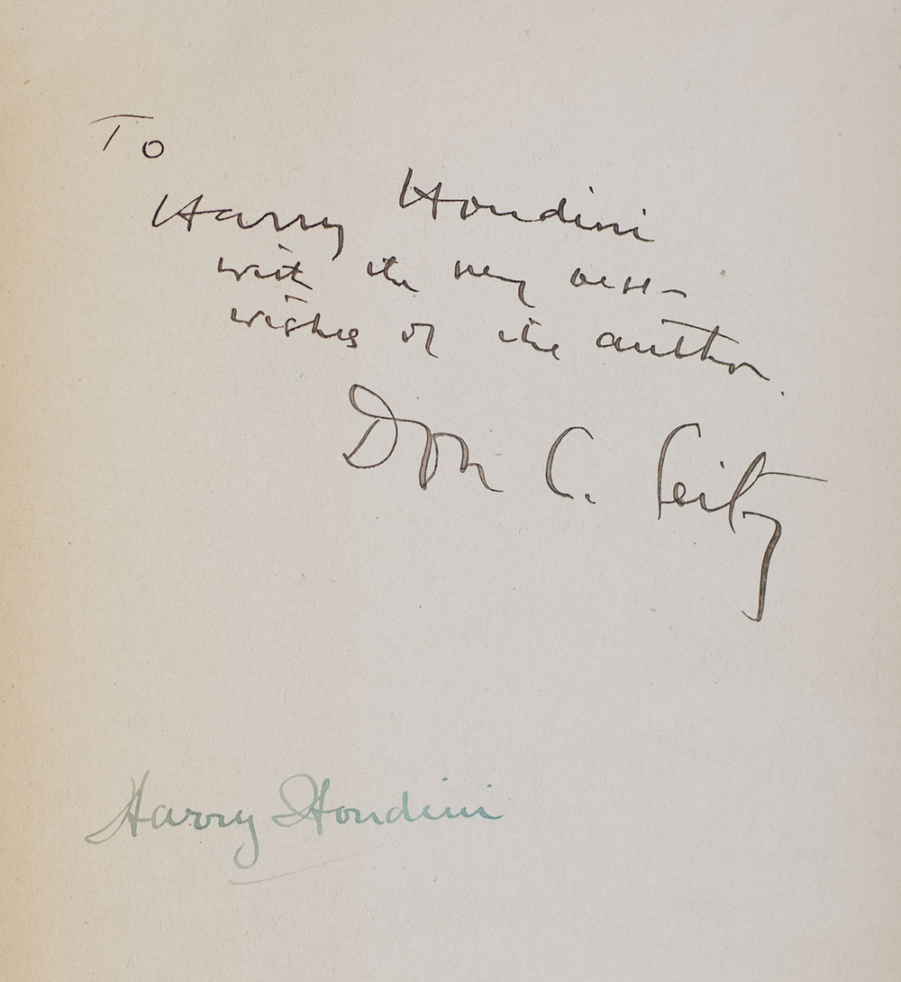 Though he was best known for his impossible feats of escapism, in later years Harry Houdini devoted himself to the world of mediums and spiritualists, first in an effort to determine if there was truth to the dark art, and later, to debunk and expose fraudulent swindlers. Throughout his career, Houdini amassed a massive collection of antique books on magic, spiritualism and a variety of mystical and supernatural topics. Though the bulk of his library constitutes a vast number of works on spiritualism dating from the 19th and 20th centuries, the collection also includes a variety of magic-related books inscribed by well-known magicians. In 1927, Houdini bequeathed over 5,000 volumes from his library to the Library of Congress including nearly 2,000 books on magic and over 3,000 on spiritualism.