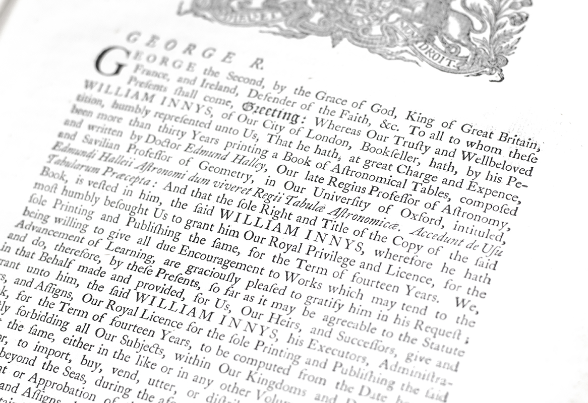 Rare First Edition of Edmond Halley's Astronomical Tables with Precepts both in English and Latin for Computing the Places of the Sun, Moon, Planets, and Comets