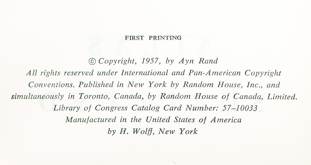 First Edition of Ayn Rand's Atlas Shrugged; Signed by Her