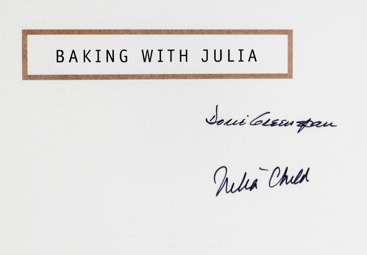 "Nothing promises pleasure more readily that the words 'freshly baked'": First edition of Baking With Julia; signed by Julia Child and Dorie Greenspan