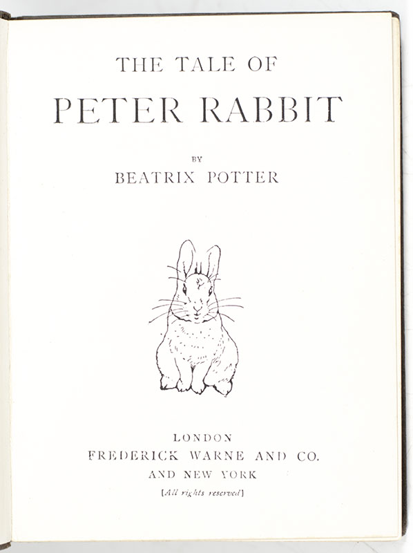 "Once upon a time there were four little rabbits, and their names were - Flopsy, Mopsy, Cotton-tail, and Peter": Rare collection of Beatrix Potter early printings; including The Tale of Peter Rabbit, The Tale of Benjamin Bunny, The Tale of Tom Kitten, and The Tale of the Flopsy Bunnies