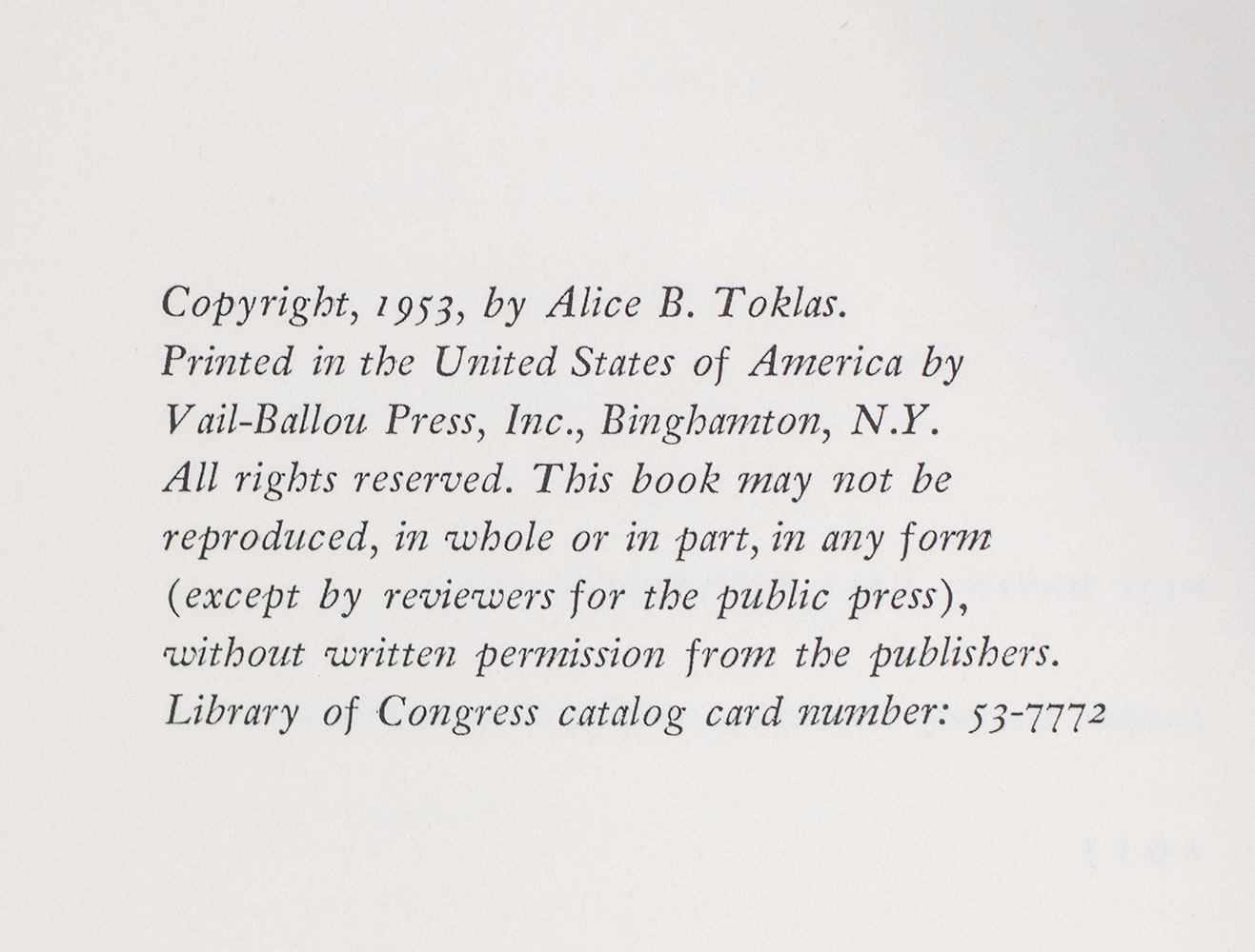 STEIN, Gertrude. [Alice B. Toklas] Introduction by Virgil Thomson.