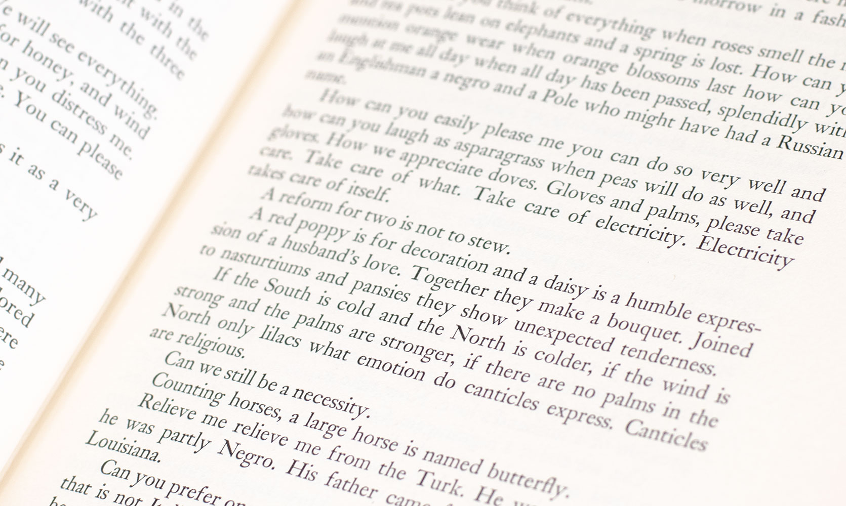 "The present volume has in it landscape and love poetry and much mention of people and a great deal about the War, the first World War" (Virgil Thompson, introduction. Included are poems, dialogues, descriptions, landscapes, abstractions, comments on people and incidents, poetic and naturalistic recountings of daily life in Spain, Paris, Nimes, and other places.