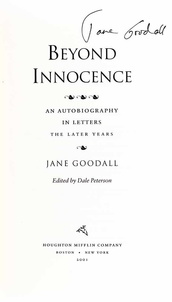 First edition of Beyond Innocence: An Autobiography in Letters: The Later Years; signed by Jane Goodall