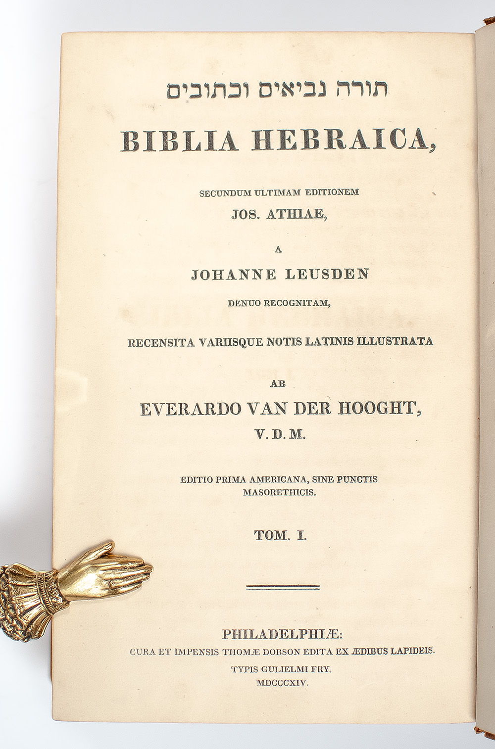 Biblia Hebraica, Secundum Ultimam Editionem Jos. Athiae, a Johanne Leusden, Denuo Recognitum, Recensita Variisque Notis Latinis Illustrata, ab Everardo Van Der Hooght. Editio Prima Americana, Sine Punctis Masorethicis.