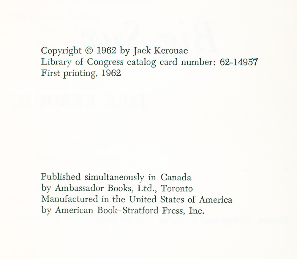 “And it's finally only in the woods you get that nostalgia for "cities" at last, you dream of long gray journeys to cities where soft evenings'll unfold like Paris": FIRST EDITION OF JACK KEROUAC'S BIG SUR