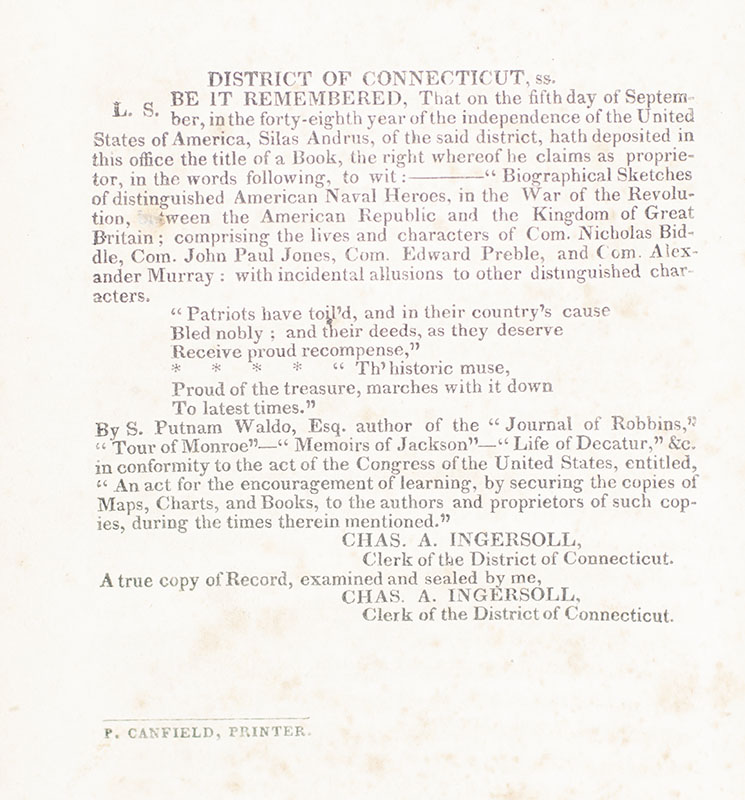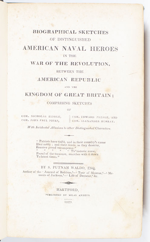 Rare first edition of S. Putnam Waldo's Biographical Sketches of Distinguished American Naval Heroes and the War of the Revolution