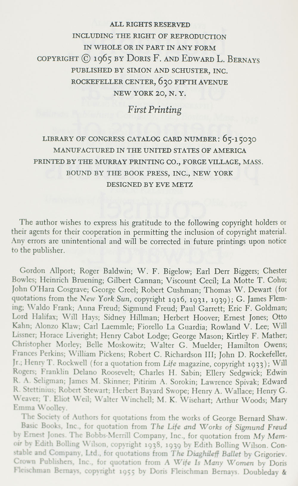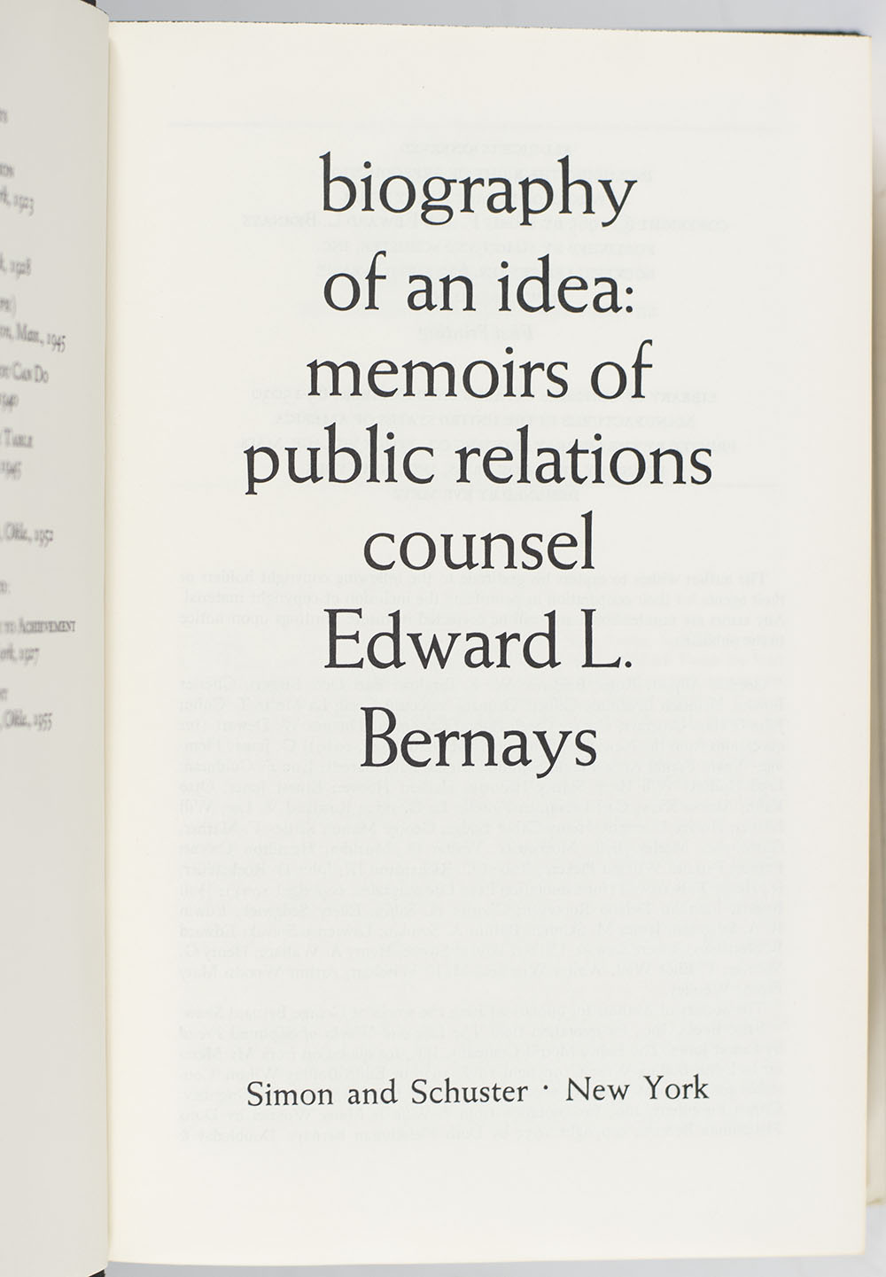 First Edition of Edward L. Bernays' Biography of An Idea