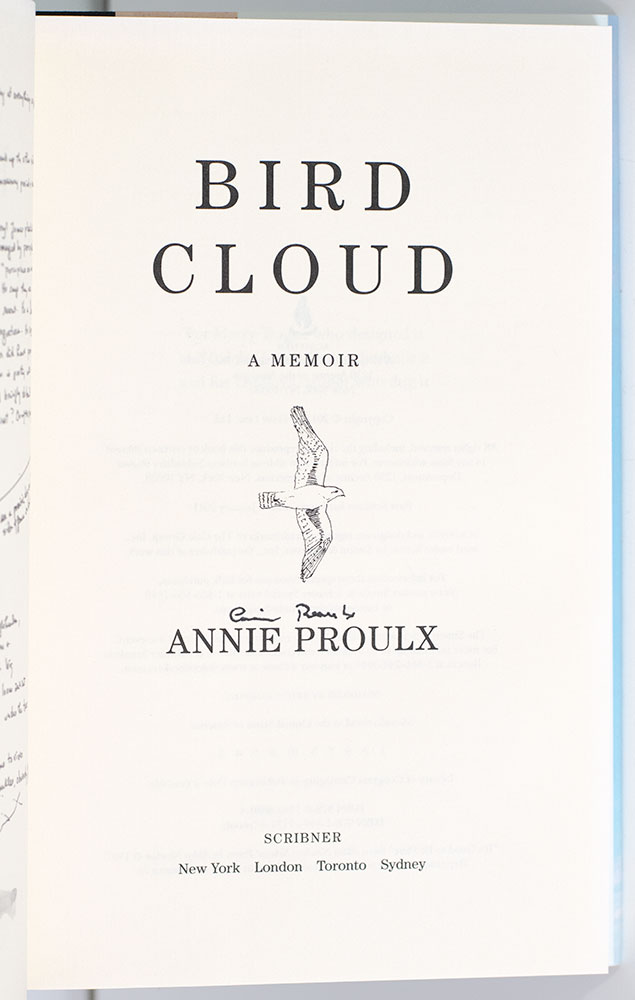 First Edition of Annie Proulx's Memoir Bird Cloud; Signed by Her