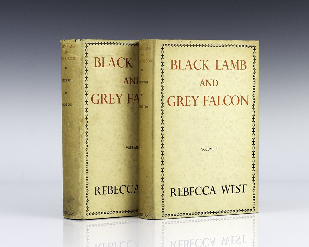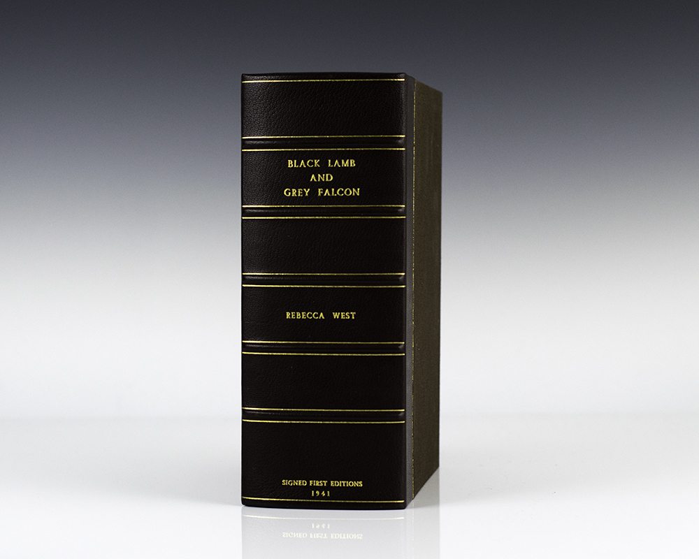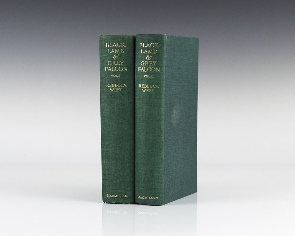 First editions of Rebecca West's masterpiece. Octavo, 2 volumes, original green cloth, cartographic endpapers. Both volumes are signed by West with volume one inscribed and dated in 1965 by the author, volume two is signed and dated in 1965. Both volumes are near fine in near fine dust jackets that show light shelfwear to the extremities. Housed in a custom half morocco clamshell box. Scarce and desirable signed by West.