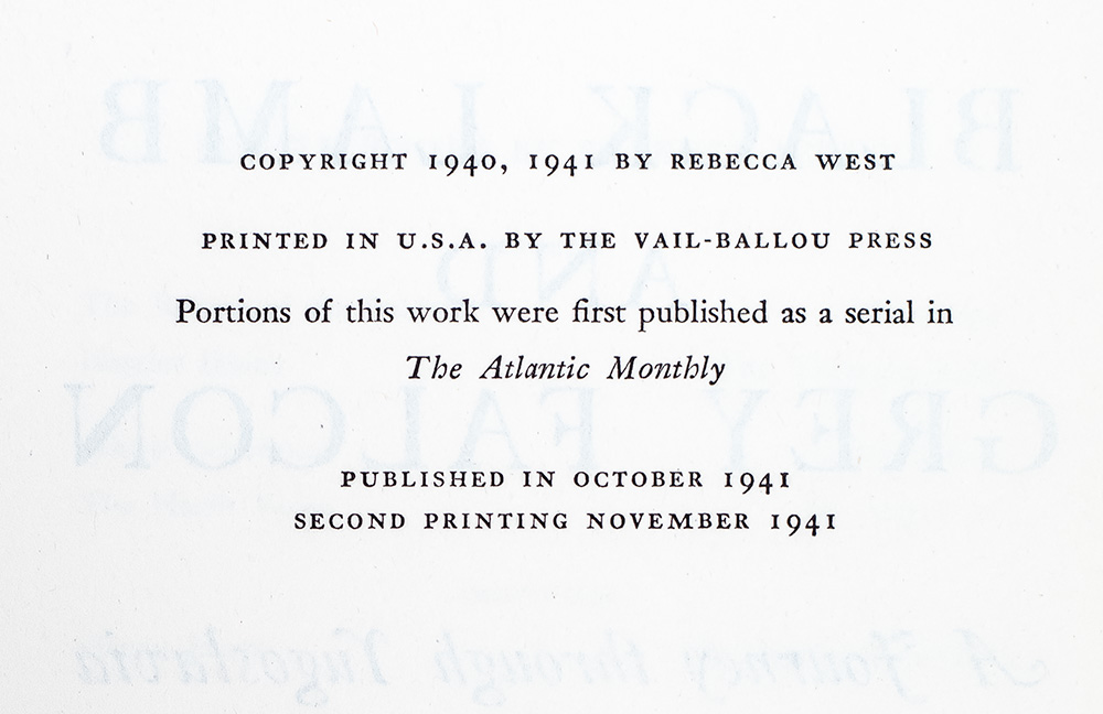 First American editions of Rebecca West's masterpiece. Octavo, 2 volumes, original cloth, cartographic endpapers. In near fine condition.