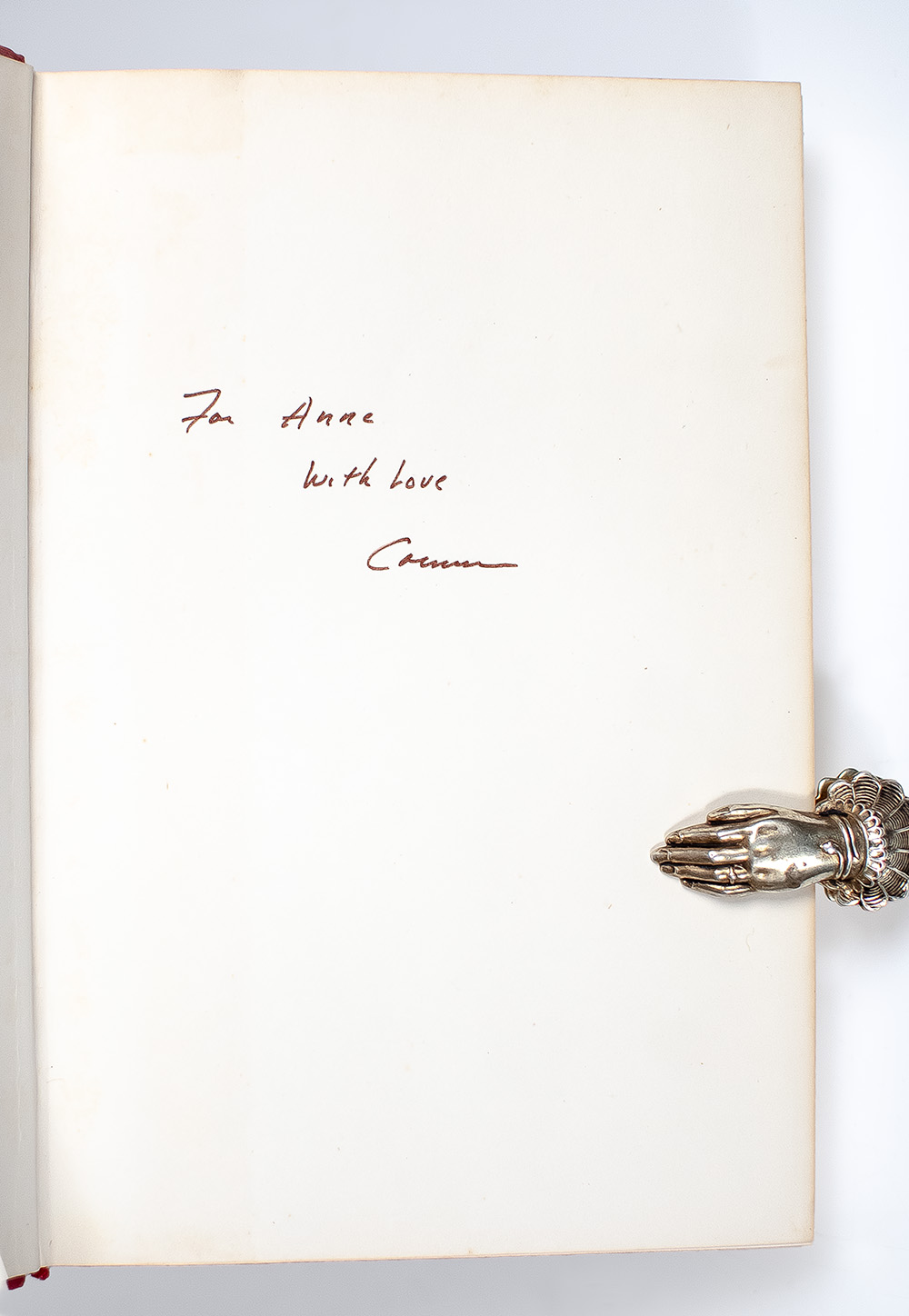 First edition of Cormac McCarthy's fifth novel, widely considered his masterpiece and among the greatest novels of the 20th century. Octavo, original half cloth. Association copy, inscribed by the author on the front free endpaper, "For Anne With Love Cormac." The recipient, Anne DeLisle was McCarthy's second wife. McCarthy published his debut novel, The Orchard Keeper, in 1965, earning the William Faulkner Award for Best First Novel and a Rockefeller Grant. With his grant money, he traveled aboard the Sylvania, where he met singer and dancer Annie DeLisle of The Healy Sisters duo. The two fell in love and married on May 14, 1966, in Annie’s hometown of Hamble, England. Using their combined incomes, the couple traveled through Paris and Geneva before settling on Ibiza, where they joined the island’s vibrant artistic community. There, McCarthy completed Outer Dark while bonding with fellow novelist Leslie Garrett. In 1967, they returned to the U.S., settling first on a Tennessee farm and later in a restored barn in Louisville, funded by McCarthy’s Guggenheim Fellowship. During this period, McCarthy wrote Suttree and completed Child of God in 1973. Annie recalled these times fondly, despite their modest means, noting McCarthy’s reclusive nature and dedication to his craft. The couple separated in 1976, after which McCarthy moved to El Paso and continued his literary ascent. Blood Meridian (1985) cemented his reputation, and All the Pretty Horses (1991) brought widespread fame, making him one of the most significant writers of the 20th century. Annie stayed in Tennessee, opening Annie’s, a jazz club and gourmet restaurant in Knoxville’s Old City in 1983. The venue played a key role in revitalizing the area, offering live music reminiscent of New Orleans. Though Annie moved on in 1989, the restaurant remained a local fixture until 2004. Very good in a very good dust jacket with some light wear and small closed tears to the extremities. Jacket painting: "The Phantom Cart" by Salvador Dali. Jacket design by Richard Adelson. Housed in a custom half morocco clamshell box by the Harcourt Bindery. Founded over a century ago in 1900, the Harcourt Bindery is the oldest and largest traditional bindery in America exclusively devoted to fine traditional leather bookbinding by hand. An exceptional association copy of the author's profound and significant magnum opus.