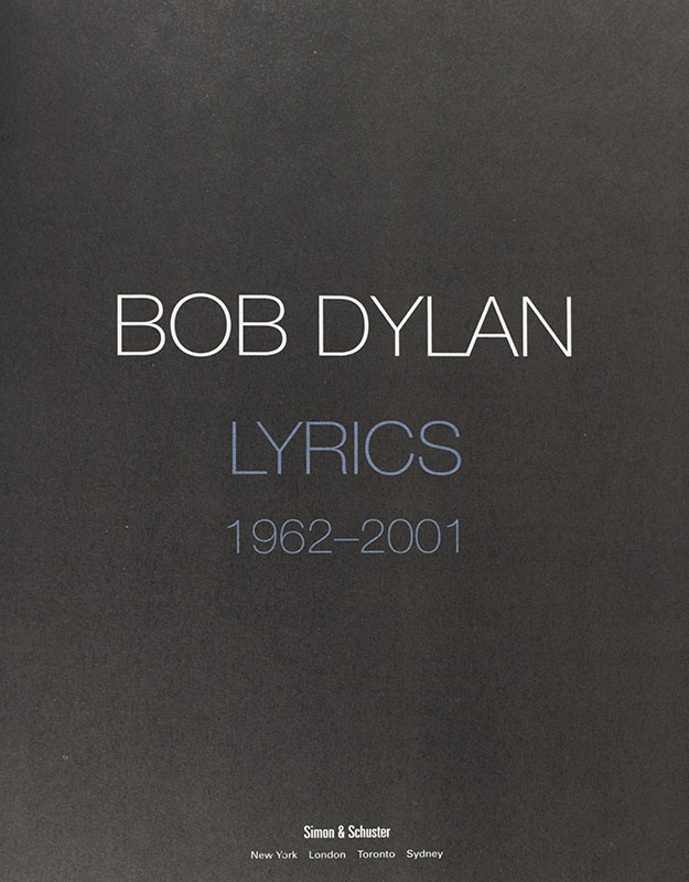 As a concrete--and hefty--reminder of what has made Dylan such a revered figure in popular music, a new collection of the lyrics of the songs on the 28 albums from Bob Dylan (1962) to Love and Theft (2001).