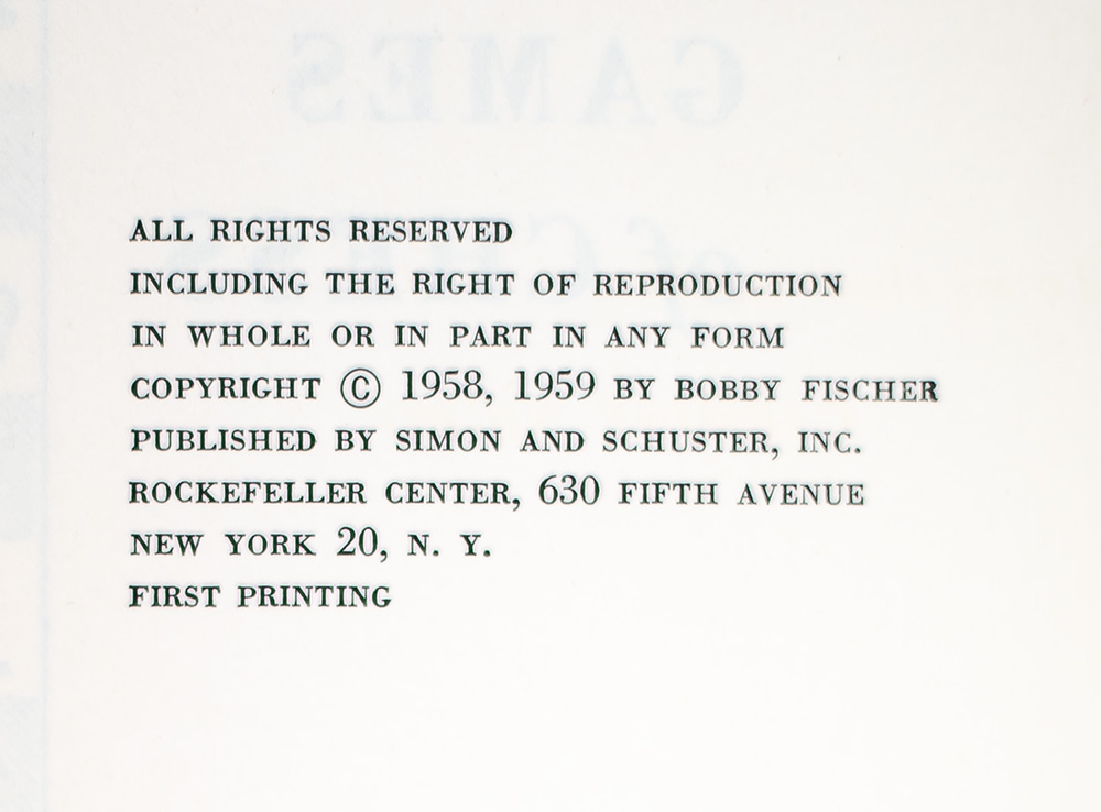 First Edition of Bobby Fischers Games of Chess; Inscribed by Him to Friend and Chess Competitor Vic Traibush