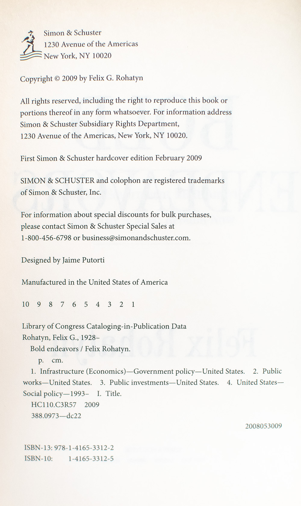 First Edition of Bold Endeavors: How Our Government Built America, and Why It Must Rebuild Now; Signed by Felix Rohatyn