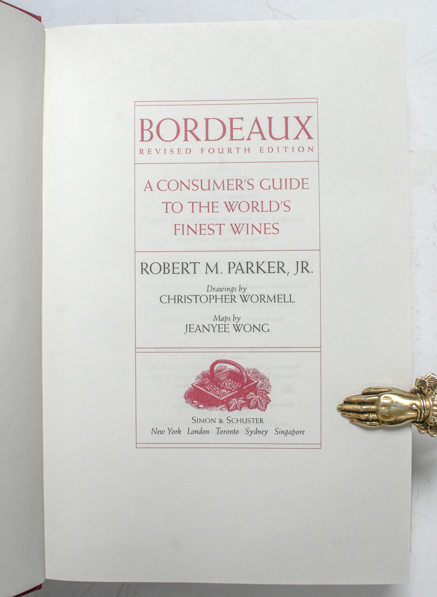 First printing of the fourth edition of Robert M. Parker's first book and definitive classic in the field. Octavo, original half cloth, pictorial endpapers. Boldly signed with a star by Robert M. Parker on the front free endpaper. Fine in a near dust jacket. Dust jacket design by Beth Middleworth. Author photograph by the author’s wife Patricia Parker.