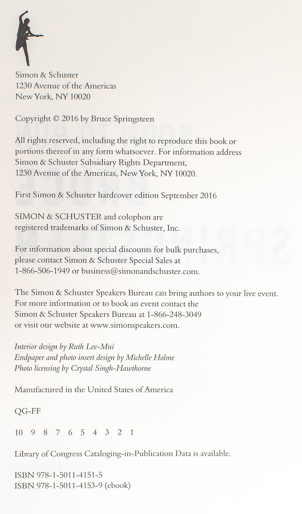 "We gotta get out while we're young `Cause tramps like us, baby we were born to run": First edition of Autobiography Born to Run; Signed by Bruce Springsteen