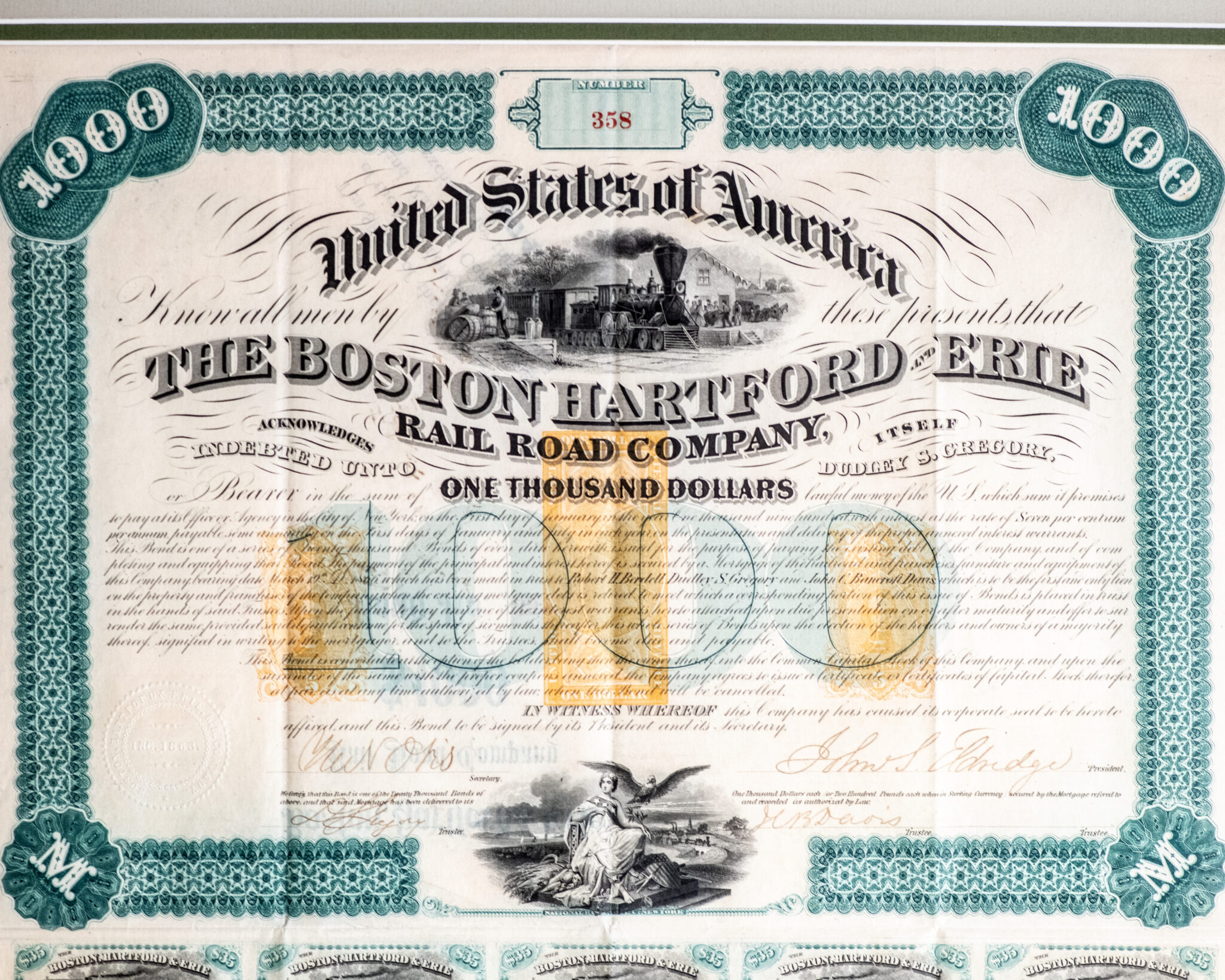 Boston, Hartford, and Erie Rail Road Company Bond.